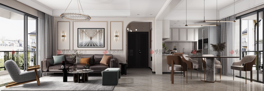 | 設(shè)計(jì)說(shuō)明:設(shè)計(jì)師沒(méi)有用特定的風(fēng)格去界定這套作品,空間交織融和現(xiàn)代、北歐、美式等多種風(fēng)格元素,精煉地碰撞出完美的混搭主義。和諧干凈的空間界面,最終呈現(xiàn)出一種自然舒適的風(fēng)格形態(tài)。設(shè)計(jì)元素多而不雜,空間色彩也盡顯低調(diào)的奢華,家具、軟飾的搭配不拘一格,黃銅搭配現(xiàn)代簡(jiǎn)約的家具,更顯高檔,展現(xiàn)出既復(fù)古又時(shí)尚的精致空間。打破風(fēng)格間的界限,將業(yè)主喜歡的元素在空間中達(dá)成平衡取舍,讓空間以隨性而自由的姿態(tài)展現(xiàn)在業(yè)主面前,達(dá)到空間的舒適性、和諧性的統(tǒng)一。 | |||