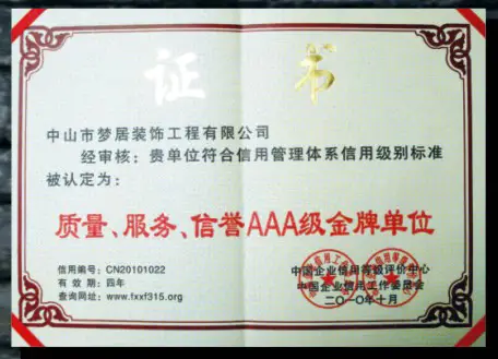 經(jīng)過(guò)二十年的發(fā)展和壯大,我們的業(yè)務(wù)已遍布全國(guó)八省百余城市,公司憑著創(chuàng)新的營(yíng)銷(xiāo)理念、先進(jìn)的管理團(tuán)隊(duì)、優(yōu)質(zhì)的工程質(zhì)量,已發(fā)展成為裝飾行業(yè)的新標(biāo)桿。目前我們擁有高端的專業(yè)設(shè)計(jì)公司、工程管理公司、先進(jìn)的木業(yè)制造公司,專業(yè)打造集設(shè)計(jì)、施工、建材選購(gòu)、倉(cāng)儲(chǔ)配送中心、售后服務(wù)于一體的完善服務(wù)體系。依托公司的整體實(shí)力,不斷銳意進(jìn)取,迅速成為裝飾界的領(lǐng)軍企業(yè),多次受到同行協(xié)會(huì)及消費(fèi)者的嘉獎(jiǎng)和好評(píng)。并于2004年3月成為中山市消委會(huì)“誠(chéng)信加盟單位”;2006年分別榮獲“廣東省消費(fèi)者滿意單位”、“ICDA中國(guó)家庭裝飾服務(wù)中心”、“全國(guó)優(yōu)秀裝飾企業(yè)”,2010年分別獲得“全國(guó)十佳誠(chéng)信單位”、“質(zhì)量、服務(wù)、信譽(yù)AAA級(jí)金牌單位”,2011年分別榮獲“廣東省著名品牌”、“全國(guó)住宅裝飾裝修行業(yè)百?gòu)?qiáng)企業(yè)”,2012年被評(píng)為“廣東省守合同、重信用企業(yè)”等。在務(wù)實(shí)國(guó)內(nèi)市場(chǎng)做大做強(qiáng)的同時(shí),也不斷開(kāi)辟國(guó)外市場(chǎng),走出去為全世界服務(wù)是我們的新目標(biāo)。我們一直在為客戶尋求一個(gè)更好的生活表現(xiàn)形式,一直在探求一種更舒適的家居感覺(jué),我們秉承“合法、正面、共贏”的經(jīng)營(yíng)理念,綠色環(huán)保裝修成為我們行業(yè)中的亮點(diǎn),“低調(diào)、務(wù)實(shí)、執(zhí)著”的做事風(fēng)格,使我們?cè)谛袠I(yè)中不斷創(chuàng)造一個(gè)又一個(gè)的典范?!坝眯闹?mèng),傳世之居”成為我們畢生的追求,我們用真心、愛(ài)心、誠(chéng)心筑起一道道生命中亮麗的風(fēng)景線。