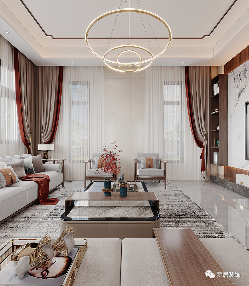 新中式墅宅將中式與現(xiàn)代元素完美融合,給人清麗舒適之美 ,這種美來自于對我國傳統(tǒng)文化的傳承與感悟,它搭載著現(xiàn)代空間虛實形制之美,展現(xiàn)中式設(shè)計中的意韻與精髓,寄托著人們的精神和追求。置身其中,亦能被東方深厚濃重的人文力量所深深吸引,感受著我國歷史深度與清姿卓越的東方意境。