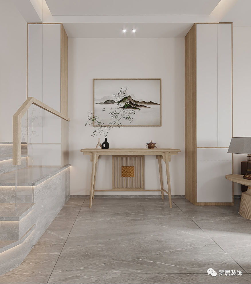 人與自然融合,將內(nèi)心的平和和寧靜致遠引入室內(nèi)空間,讓回家是一種回歸和放松的體驗,遠離城市的喧囂和浮躁。