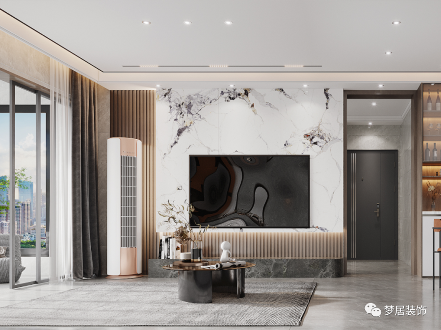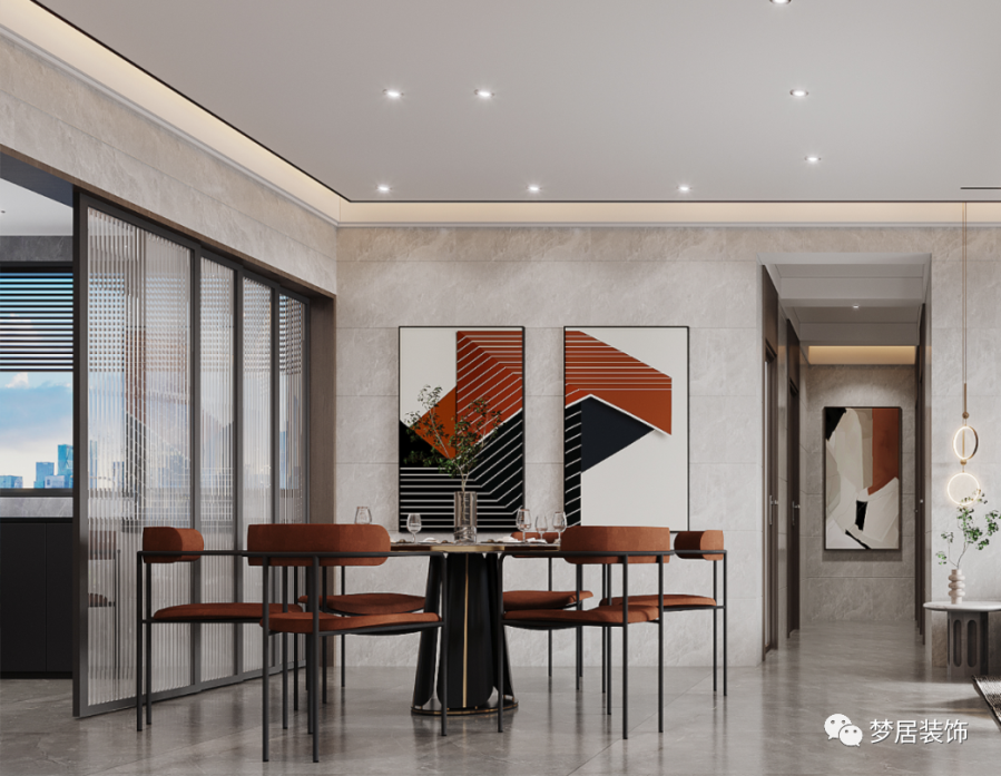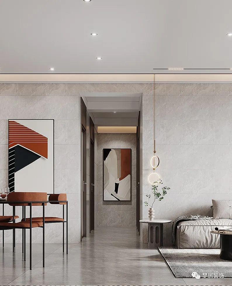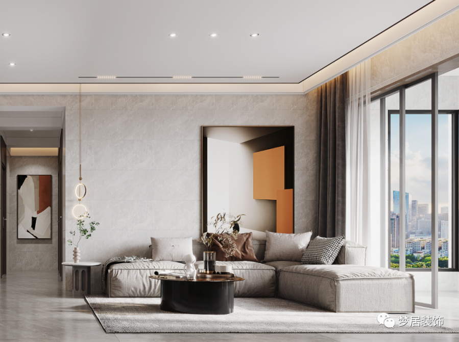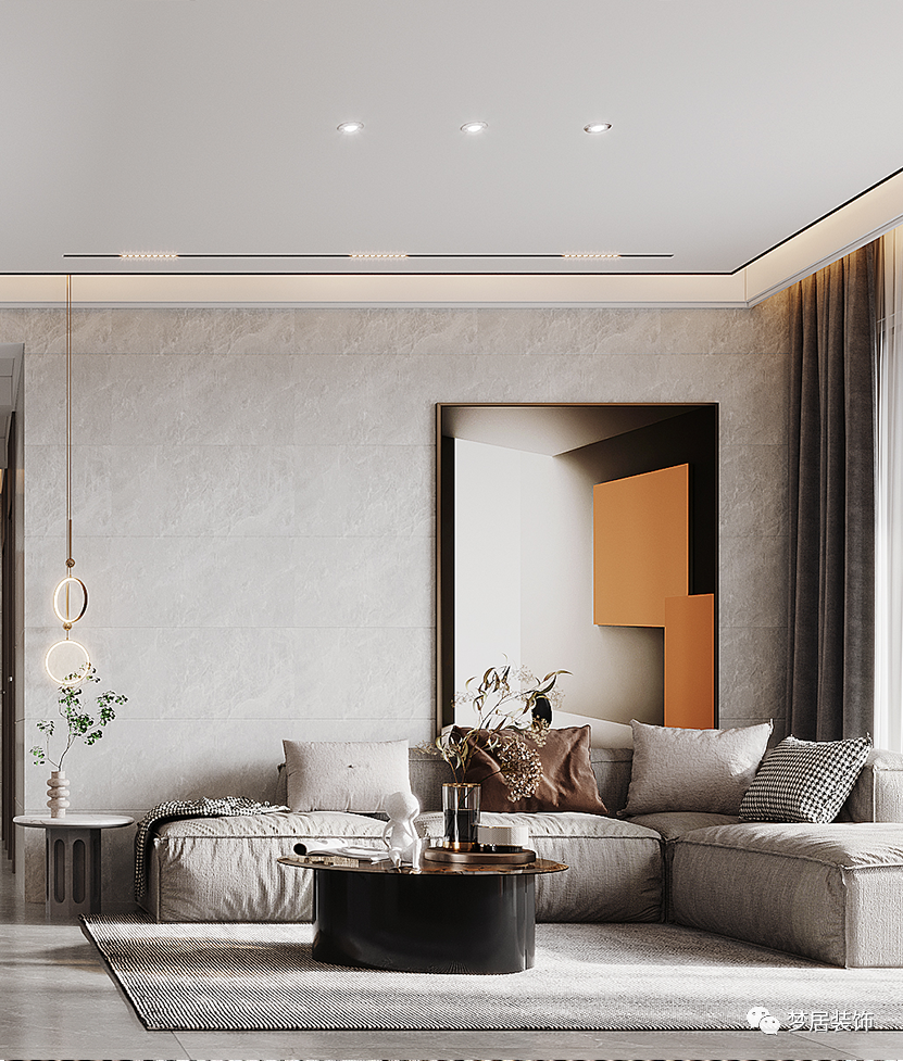 入戶玄關(guān)設(shè)置了鞋柜和物品收納區(qū)域,方便業(yè)主日常生活所需。入戶的設(shè)計(jì)也為室內(nèi)空間起到了一個(gè)緩沖的作用,保持室內(nèi)空間的私密性。客廳搭配淺灰色地磚通鋪,“無主燈”設(shè)計(jì)令空間更加舒適寬敞。偏硬朗的現(xiàn)代風(fēng)格簡(jiǎn)潔大氣,簡(jiǎn)約隨性的布藝沙發(fā)搭配大幅現(xiàn)代畫作,極具設(shè)計(jì)感,干凈利落的線條簡(jiǎn)潔優(yōu)雅,復(fù)古的橙色在現(xiàn)代空間中碰撞出不一樣的時(shí)尚感。臥室地面采用木地板鋪貼更溫馨,整墻衣柜滿足收納,借助飄窗設(shè)計(jì)出梳妝臺(tái),節(jié)省空間區(qū)域。時(shí)尚的現(xiàn)代手法呈現(xiàn)出年輕人所青睞的新時(shí)代理想居所。