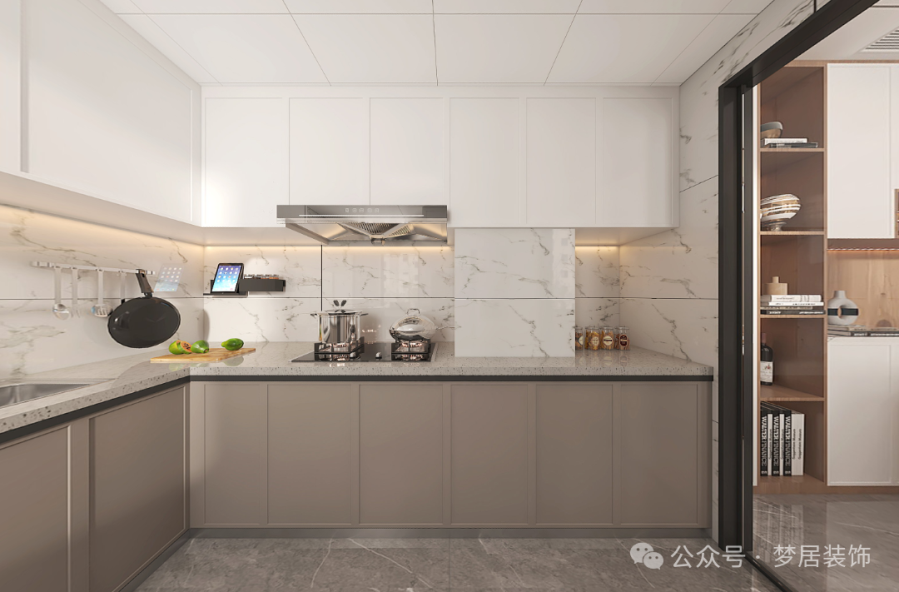 廚房推演出最優(yōu)的生活尺度,簡約精致的設計給足生活儀式感。木色與白色廚柜即便在烹飪中也不失迷人的雅致氣息。簡約的石英石操作臺面輕松簡雅,兼具性能和藝術的精髓,于此間暢享味蕾與視覺的雙重感受。