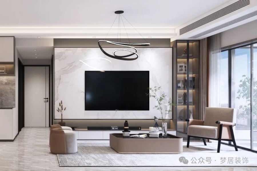 屋外,是清清淺淺的陽光,房內(nèi),是溫溫暖暖的日子。房子的采光特別好,燈帶和筒燈的設(shè)計讓空間看起來更干凈,光線分布也更加均勻。整面大理石巖板電視墻讓空間更大氣有格調(diào),懸浮設(shè)計更加時尚。靠陽臺部分設(shè)置了儲物柜和展示柜。