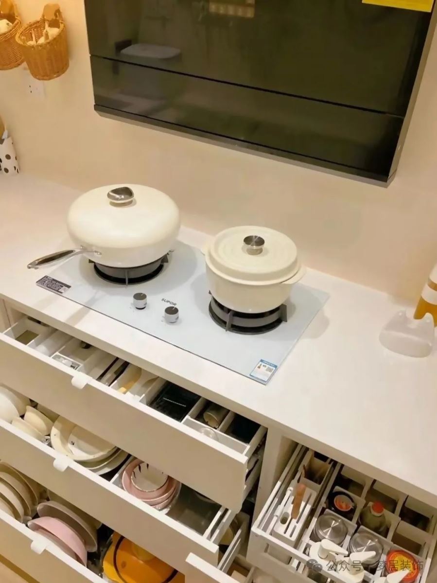 做好收納空間的設(shè)計(jì),地柜多做抽屜,會(huì)比平開門好用很多。