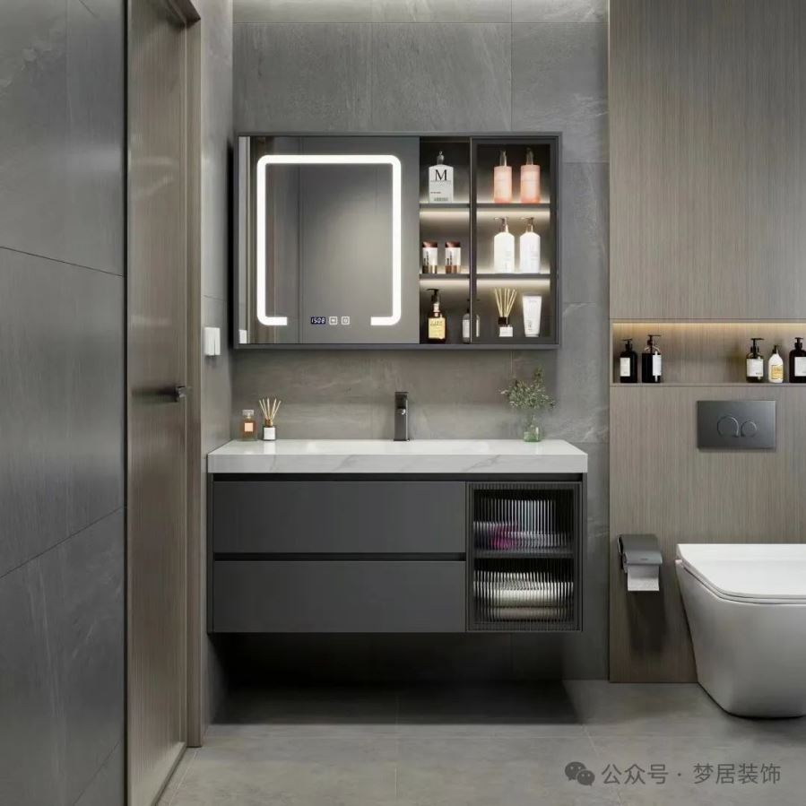 浴室柜還可以考慮有側(cè)柜的設(shè)計,對于小衛(wèi)生間收納來說,絕對很實用,隨手拿取也很方便。