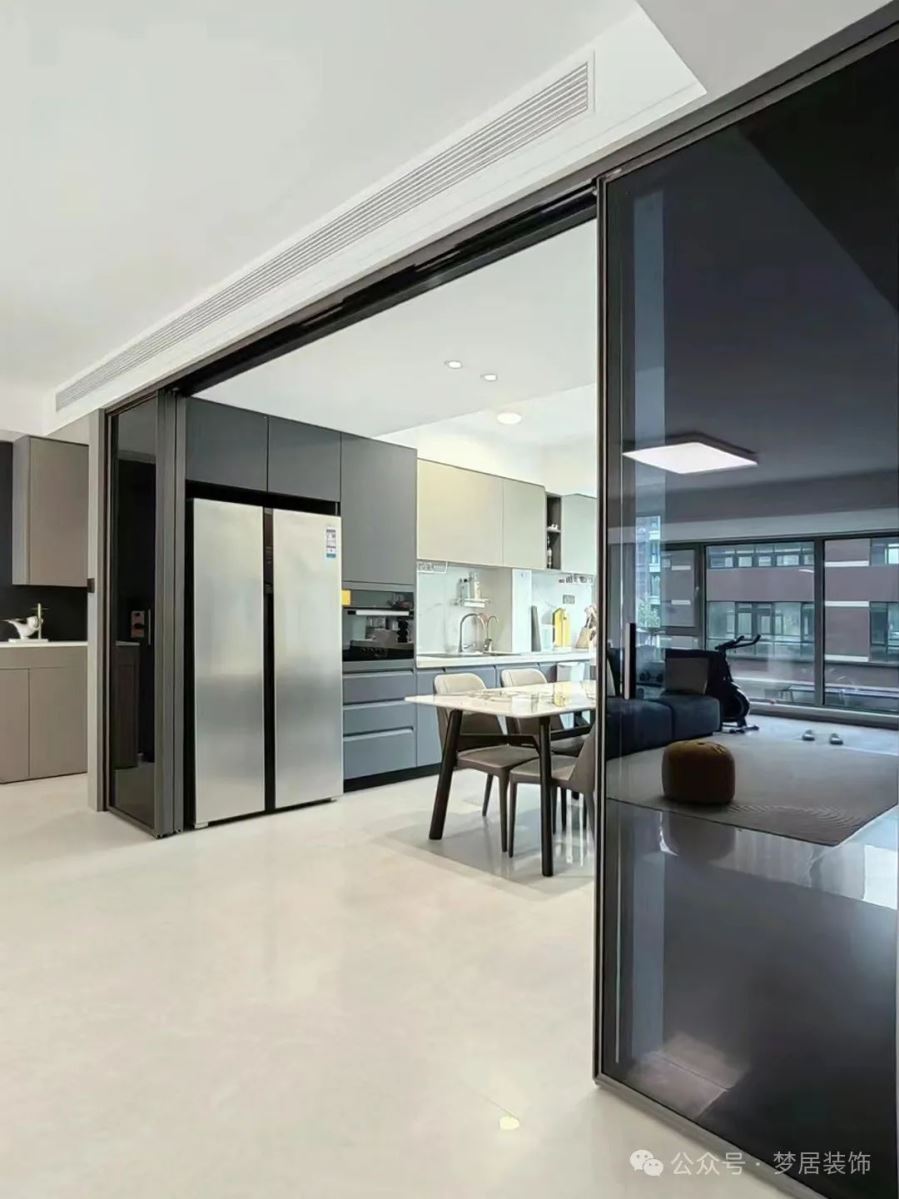 開啟方式可以根據(jù)喜好選擇推拉、折疊、平開。如果是用在廚房,建議選擇更好打理的玻璃材質(zhì)如長虹玻璃、油砂玻璃等。不得不說,清潔起來真的方便了很多。