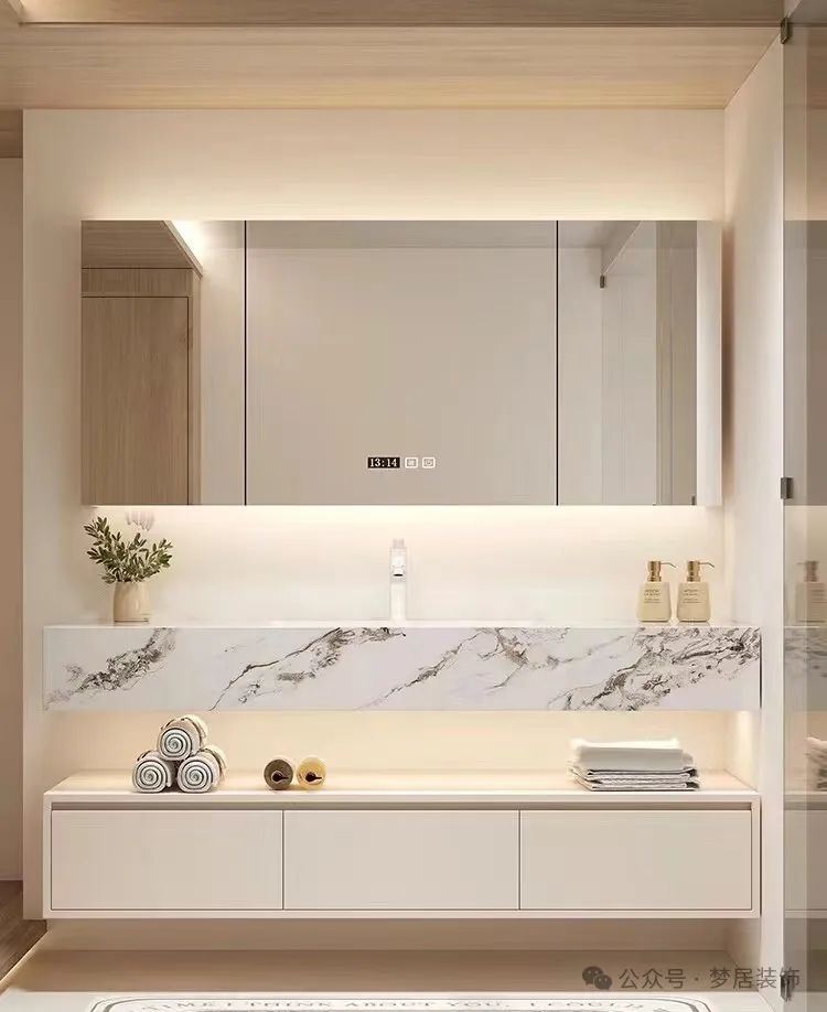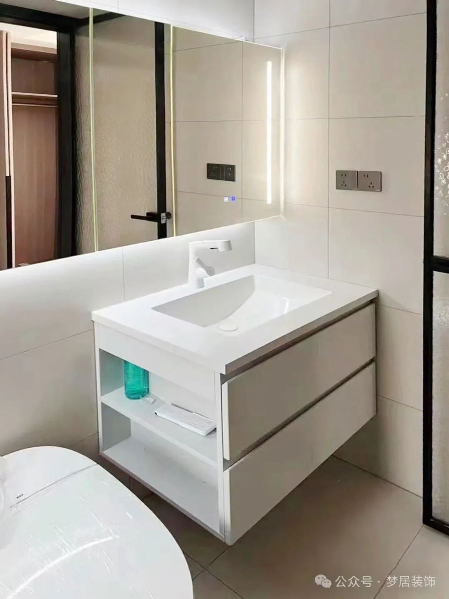 不管你家排水系統(tǒng)是墻排還是地排,懸空浴室柜都可以用。如果是壁掛式臺盆通常是采用墻排,在釋放空間減少衛(wèi)生死角的同時不僅干凈還不容易反味。