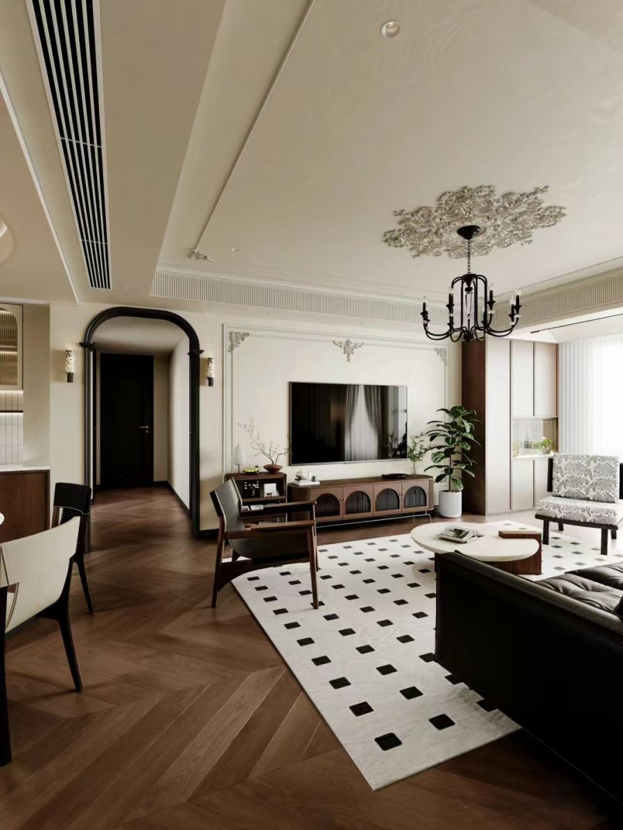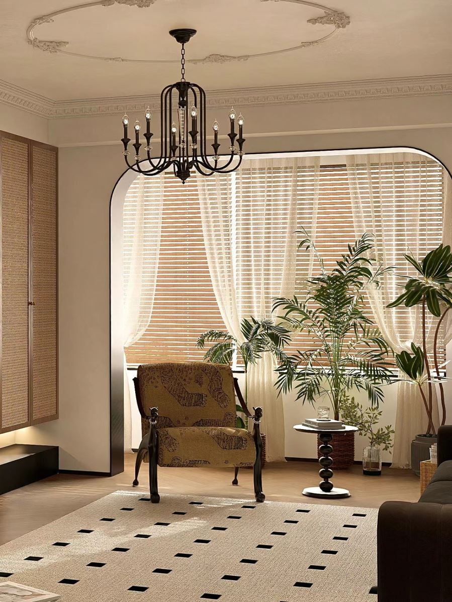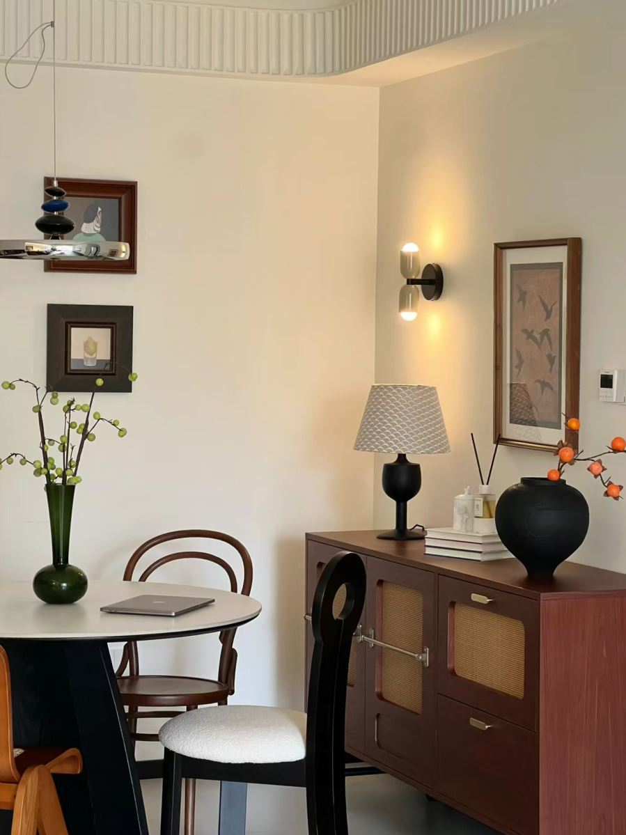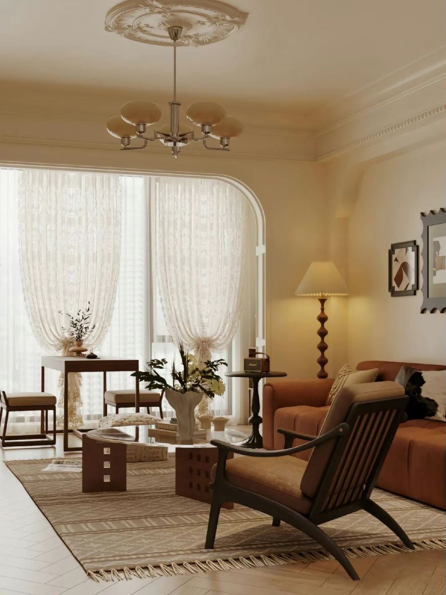 中古風(fēng)的軟裝元素則注重造型簡(jiǎn)約和家具精致的線條感。
