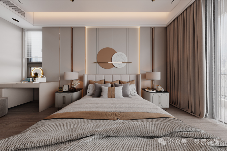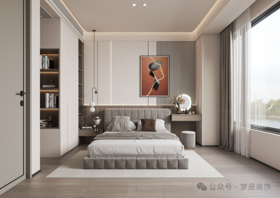 臥室的隔音做得好,能讓我們更高效休息。背景墻做軟包搭配燈帶,組合起來(lái)不僅能提升臥室的氛圍感,空間精致,隔音又實(shí)用。