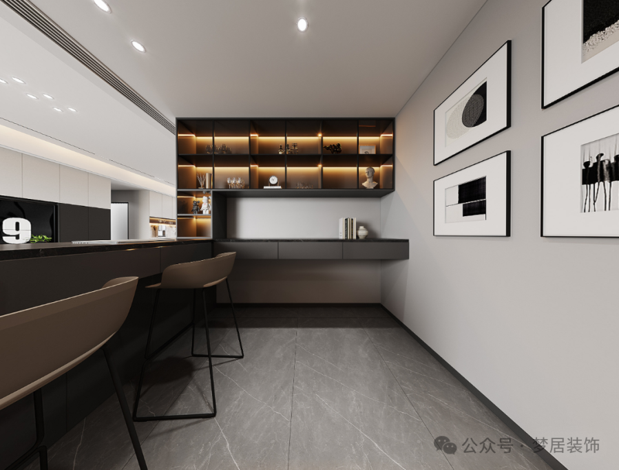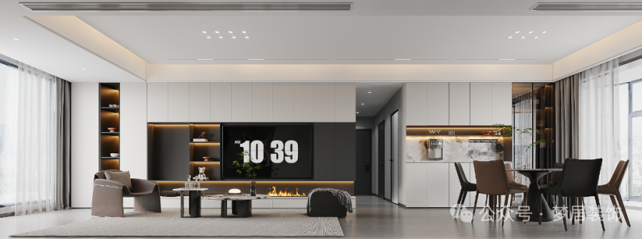 為滿足業(yè)主對休閑與閱讀空間的需求,我們精心設(shè)計了一個開放式的休閑區(qū),開放式的布局使得空間利用更加靈活,同時增加家庭成員在共享空間中的陪伴時間。