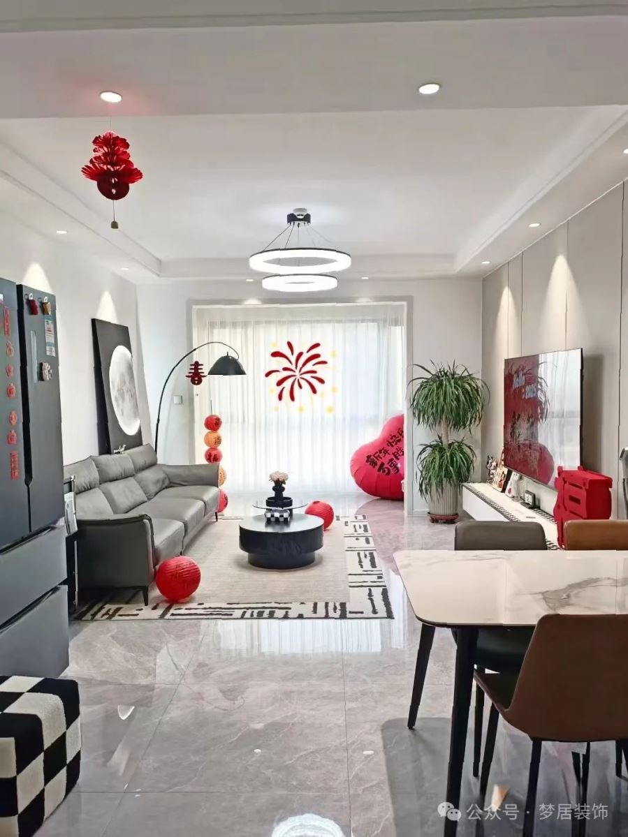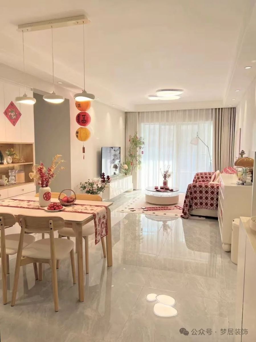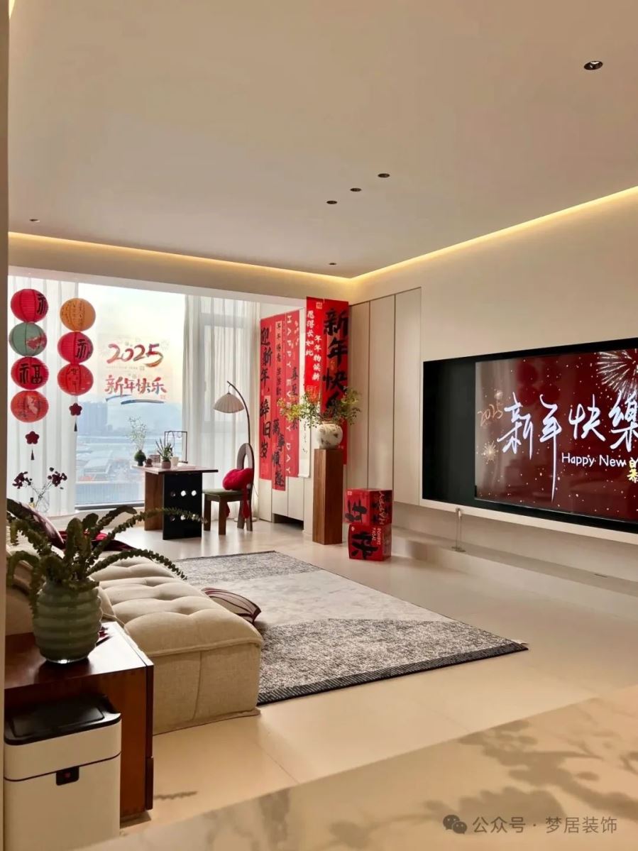 在燈光選擇上,應以明亮柔和為主,讓家居空間看起來溫馨舒適、活力滿滿,也能于無形間放大整體空間的新春氛圍感。
