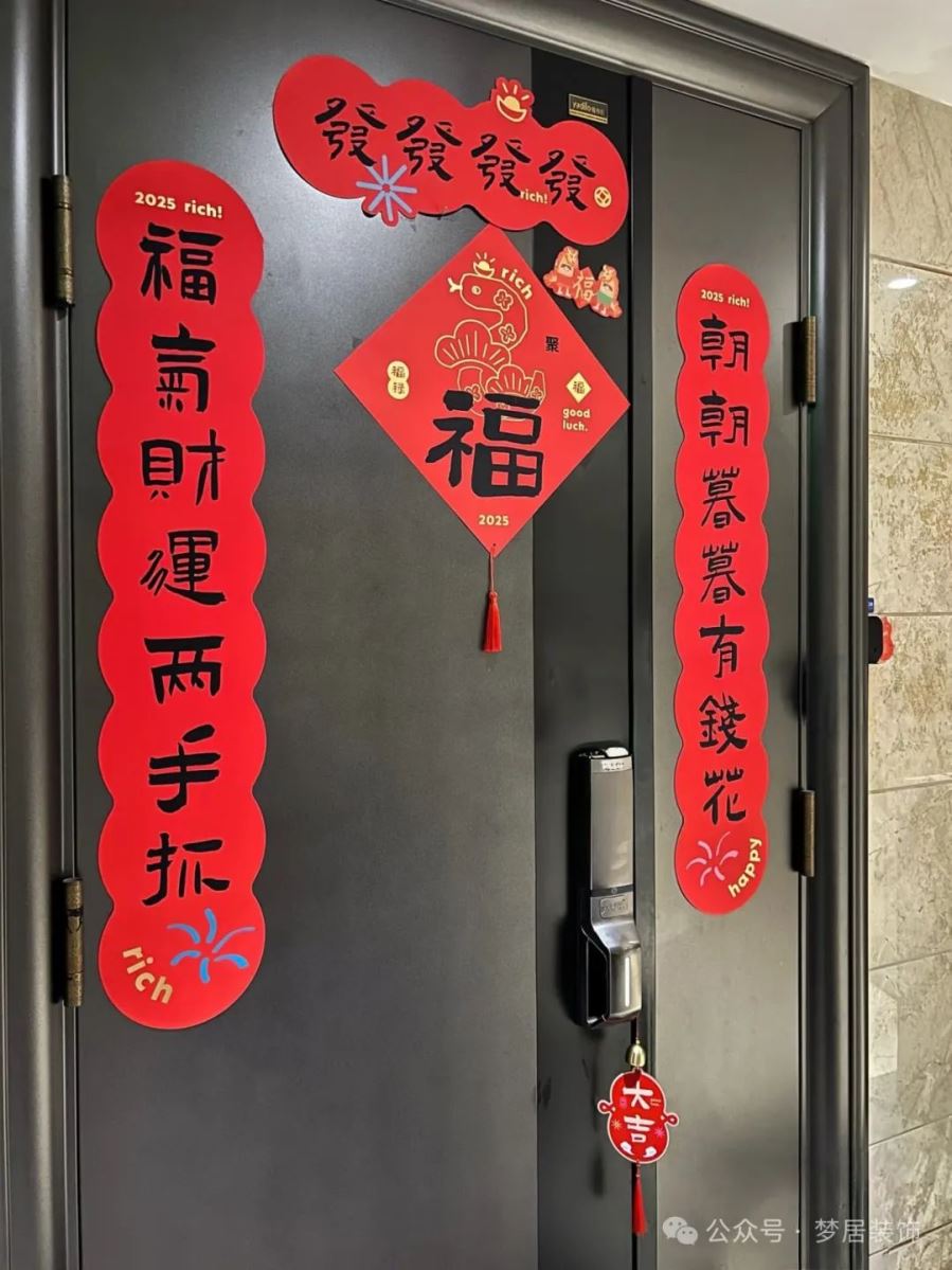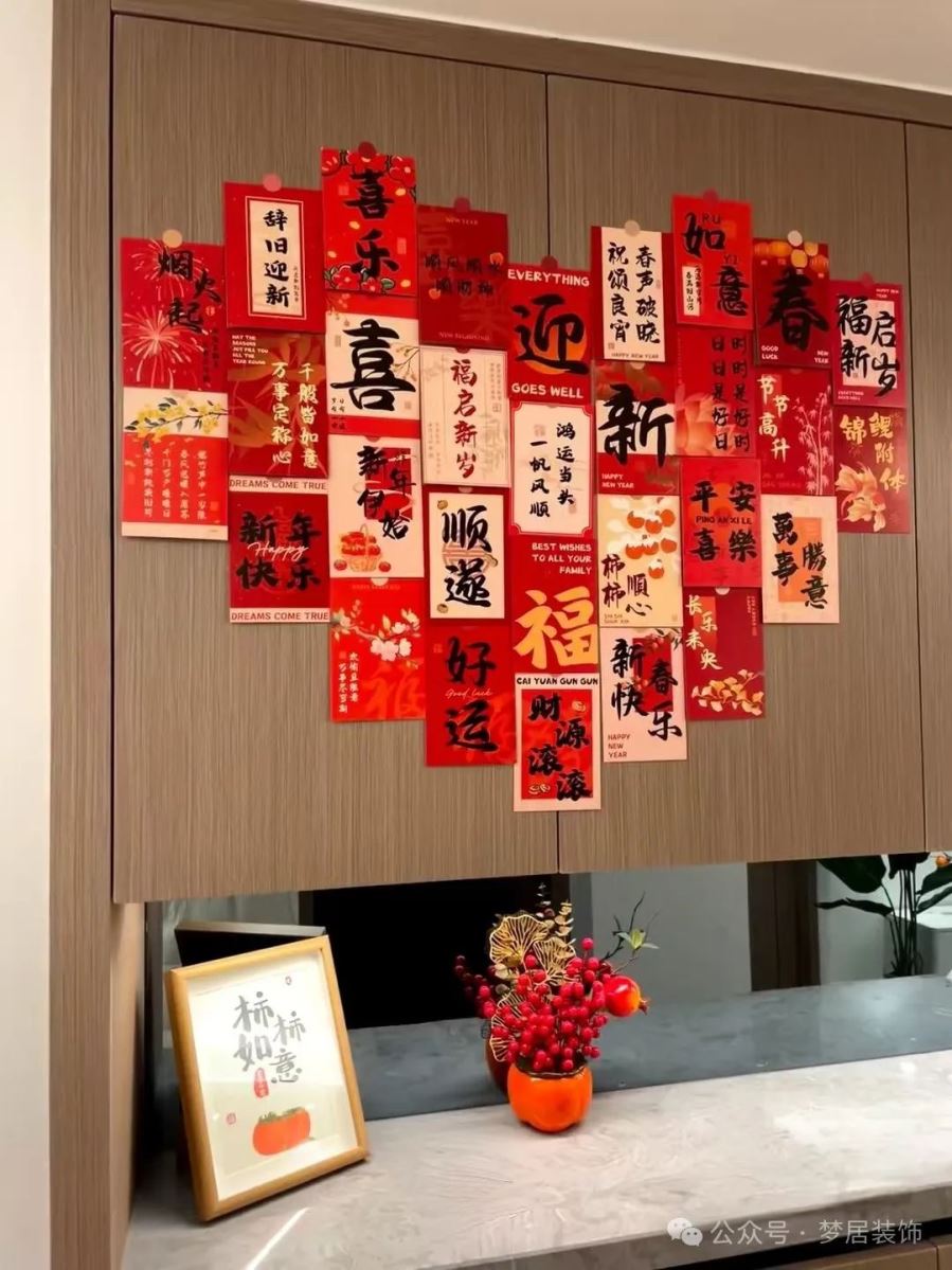 福字牌與小掛牌:紅包掛在樹枝上、小對聯(lián)貼在墻上,這些小巧的裝飾品既能凸顯年味,又為家居增添一份喜慶感。