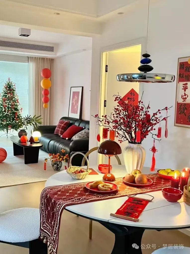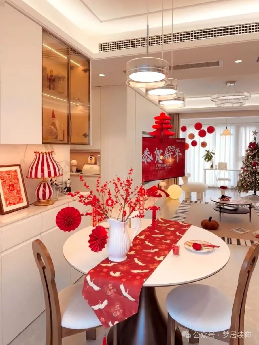 可以把桌布、靠枕等軟裝元素,換成喜氣洋洋的紅色,應景的同時不破壞整體設計感,讓家充滿歡快且活躍的格調。